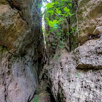 Após esta visita, faremos uma subida em direção à Lapa de Santa Margarida, a Lapa é uma gruta natural que alberga no seu interior uma pequena capela do século XVII, e cujo o acesso é feito por uma escadaria estreita com cerca de 200 degraus talhados na rocha. Após esta breve visita retomaremos o nosso percurso com a subida da escadaria de acesso à Lapa e rumaremos em direção à Fenda da Arrábida, uma formação geológica única, caracterizada por um profundo desfiladeiro de calcário. Acesso esse feito por trilho técnico de algum grau de dificuldade, após no interior da Fenda o percurso segue por trilho sinuoso de cerda de 700 metros de onde seguiremos em direção á praia do Creiro. Nesse trajeto aproveitamos para visitar o Complexo Romano de Salgas e Molhos de Peixe do Creiro. Após essa visita seguiremos em direção à praia do Creiro também conhecida por praia do Portinho da Arrábida, onde faremos a nossa primeira pausa.