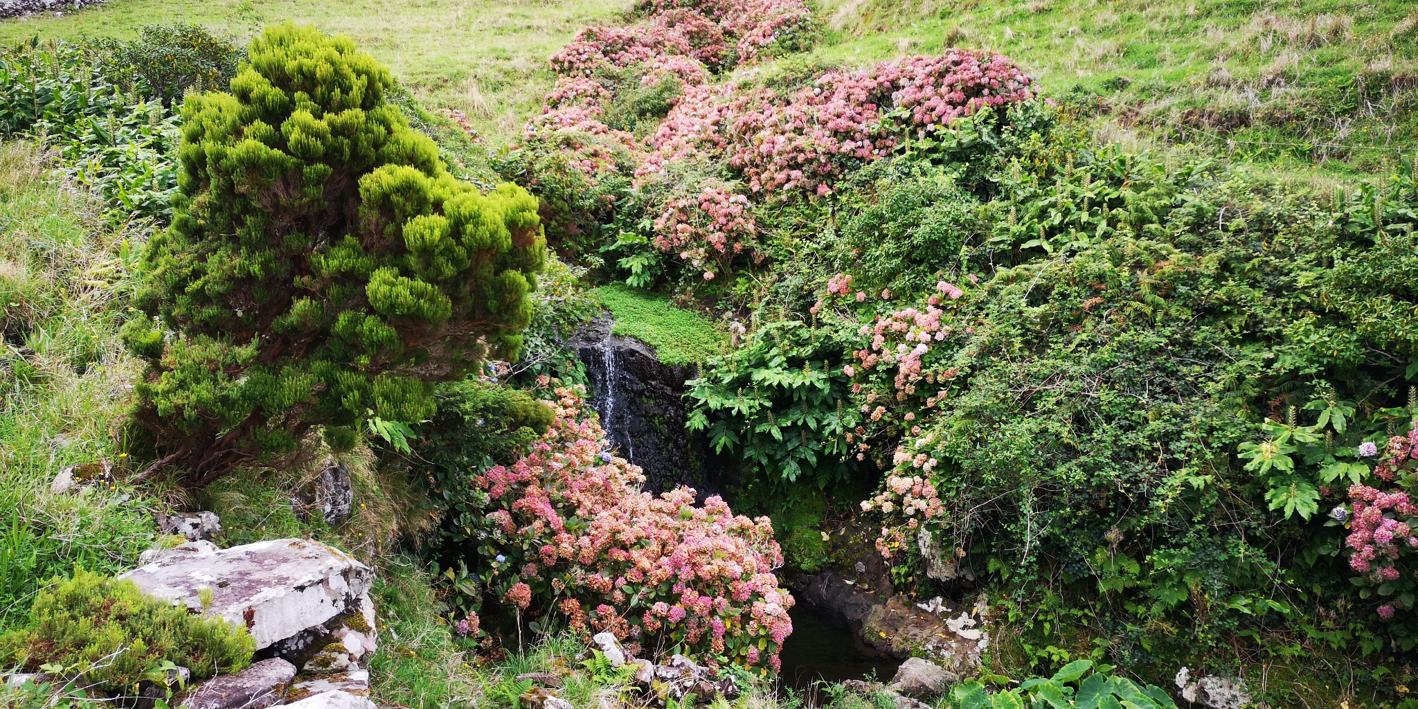 Chegada ao Aeroporto de Santa Cruz das Flores e transfere para a Aldeia da Cuada as 13hDas Lagoas das Flores à Fajã Grande