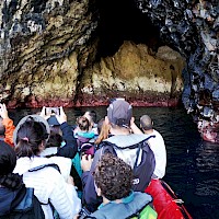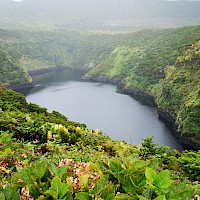 Passeio de barco pela costa Nordeste da Ilha das Flores, onde poderemos visitar algumas grutas e enseadas de águas cristalinas e escarpas imponentes que mergulham no mar do Atlântico. Faremos a travessia até à mais pequena ilha dos Açores, a Ilha do Corvo. Nesta travessia poderemos ter a hipótese de ver alguns Golfinhos e/ou Baleias caso eles façam a sua aparição.Caldeirão e Cara do Índio