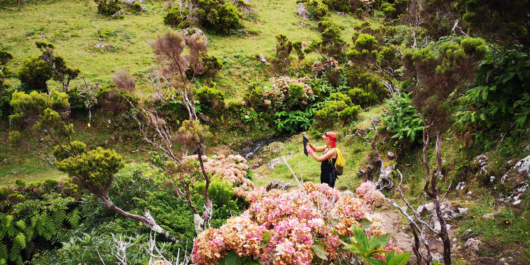 Chegada ao Aeroporto de Santa Cruz das Flores e transfere para a Aldeia da Cuada às 13hDas Lagoas das Flores à Fajã Grande