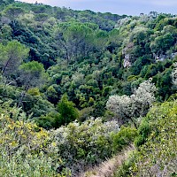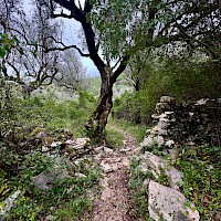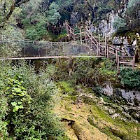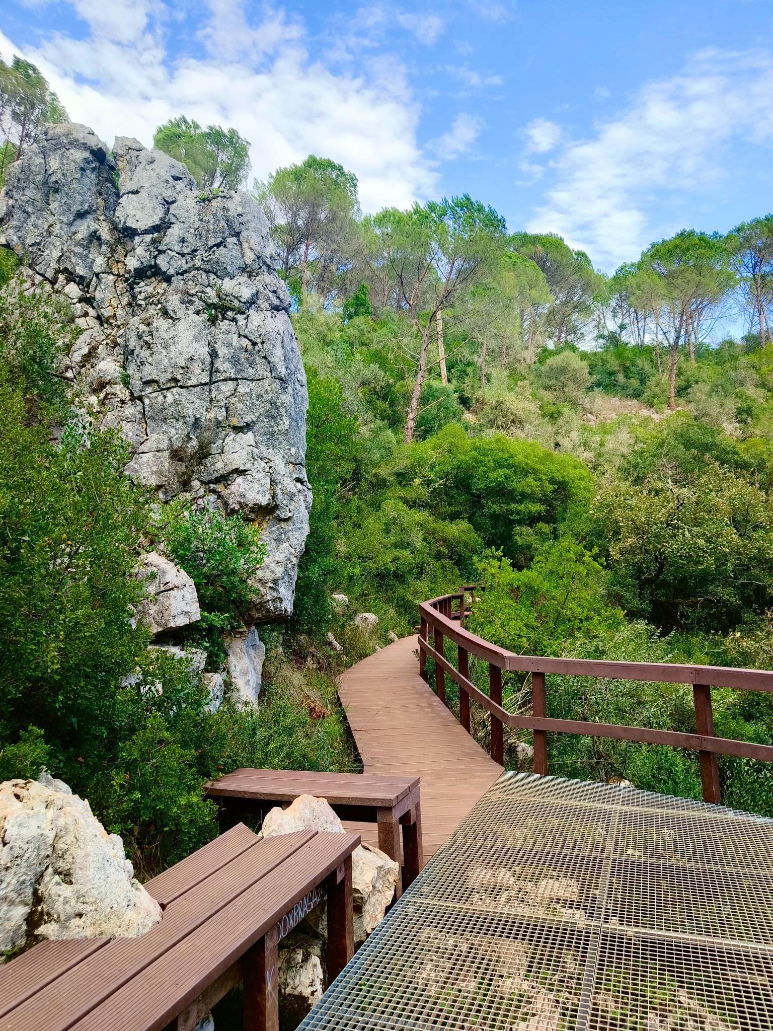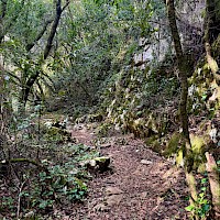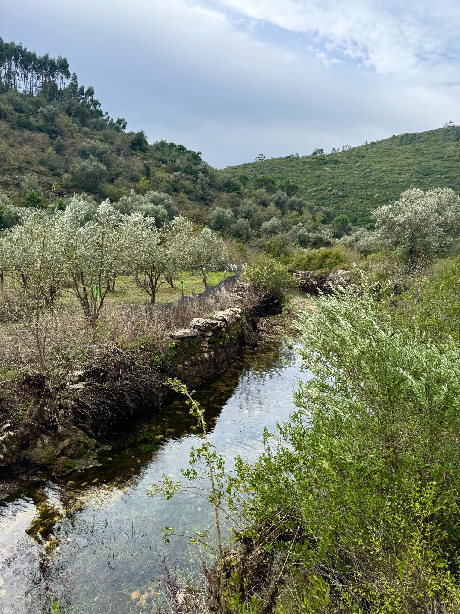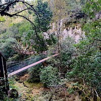 Entre paisagens esculpidas pela força da natureza, esta caminhada convida-o a descobrir um dos territórios mais autênticos e surpreendentes do maciço calcário português. Entre vales profundos, encostas íngremes e formações rochosas esculpidas pela água ao longo de milénios, o percurso revela a essência bravia da Serra de Sicó, onde a natureza se expressa em formas, texturas e cores únicas. Logo nos primeiros passos, o trilho mergulha num cenário marcado por canhões fluviocársicos, escarpas calcárias e pequenos corredores naturais que nos conduzem ao coração desta paisagem geológica singular. À medida que avançamos, a vegetação mediterrânica assume protagonismo, com extensos mantos de alecrim, tomilho, rosmaninho, zambujeiro e carrasco, cujos aromas intensos acompanham todo o caminho. Entre a flora característica destacam-se ainda a azinheira, o medronheiro, a murta e diversas espécies calcícolas que florescem nas fendas da rocha. A fauna completa o cenário, com o voo rápido do peneireiro-vulgar, a presença discreta da raposa, o raspar da gralha-de-bico-vermelho e o coaxar das rãs junto às linhas de água sazonais. O percurso conduz também a pontos de grande beleza, como as impressionantes Buracas de Casmilo — formações cársicas únicas que consistem em profundas cavidades naturais, resultado da dissolução da rocha calcária, que oferecem um vislumbre fascinante da geologia da região — além de pequenas cavidades, campos abertos de pastoreio tradicional e zonas onde o silêncio é apenas cortado pelo som do vento a percorrer a serra. Um dos momentos altos é a aproximação ao vale do Rio de Mouros, onde a água, nas épocas de maior caudal, forma cascatas e lagoas cristalinas que convidam à contemplação e proporcionando um cenário ideal para observar libélulas, rãs e pequenos invertebrados que completam este ecossistema vibrante. É uma experiência ideal para quem procura natureza em estado puro, aventura, descoberta e um contacto íntimo com uma das serras mais fascinantes do centro de Portugal.