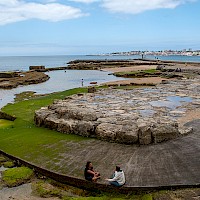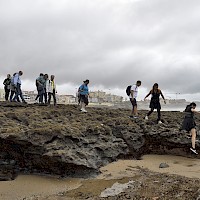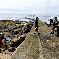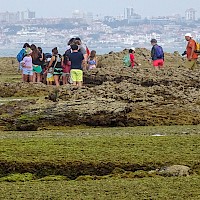 Água (1,5L), chapéu, calçado apropriado a uma caminhada junto ao mar, tendo em atenção que se pode molhar nas poças da maré