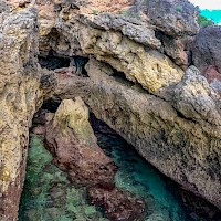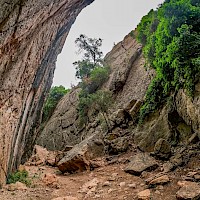 Após esta visita, faremos uma subida em direção à Lapa de Santa Margarida, a Lapa é uma gruta natural que alberga no seu interior uma pequena capela do século XVII, e cujo o acesso é feito por uma escadaria estreita com cerca de 200 degraus talhados na rocha. Após esta breve visita retomaremos o nosso percurso com a subida da escadaria de acesso à Lapa e rumaremos em direção à Fenda da Arrábida, uma formação geológica única, caracterizada por um profundo desfiladeiro de calcário. Acesso esse feito por trilho técnico de algum grau de dificuldade, após no interior da Fenda o percurso segue por trilho sinuoso de cerda de 700 metros de onde seguiremos em direção á praia do Creiro. Nesse trajeto aproveitamos para visitar o Complexo Romano de Salgas e Molhos de Peixe do Creiro. Após essa visita seguiremos em direção à praia do Creiro também conhecida por praia do Portinho da Arrábida, onde faremos a nossa primeira pausa.