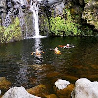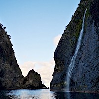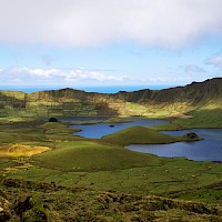 Passeio de barco pela costa Nordeste da Ilha das Flores, onde poderemos visitar algumas grutas e enseadas de águas cristalinas e escarpas imponentes que mergulham no mar do Atlântico. Faremos a travessia até à mais pequena ilha dos Açores, a Ilha do Corvo. Nesta travessia poderemos ter a hipótese de ver alguns Golfinhos e/ou Baleias caso eles façam a sua aparição.Caldeirão e Cara do Índio
