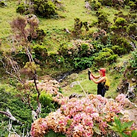 Chegada ao Aeroporto de Santa Cruz das Flores e transfere para a Aldeia da Cuada as 13hDas Lagoas das Flores à Fajã Grande