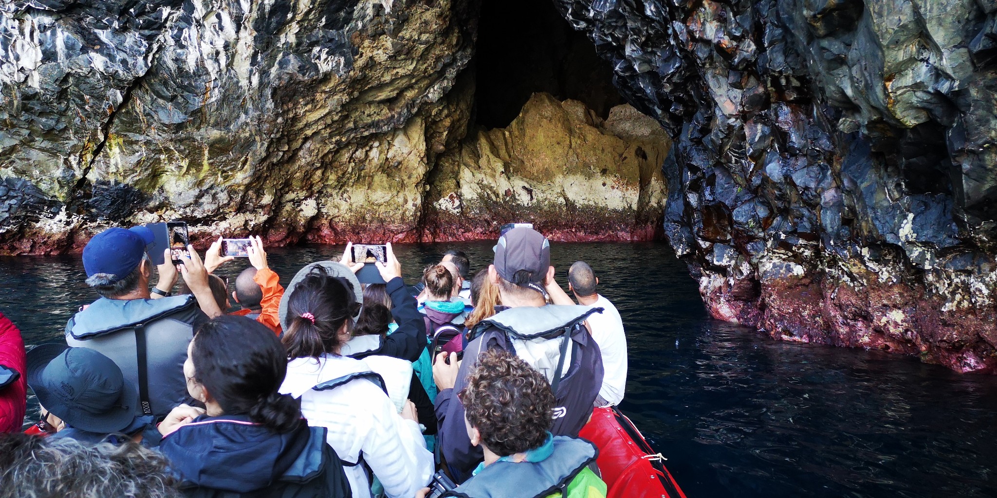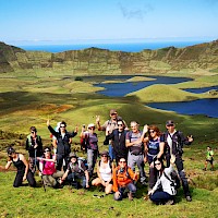 Passeio de barco pela costa Nordeste da Ilha das Flores, onde poderemos visitar algumas grutas e enseadas de águas cristalinas e escarpas imponentes que mergulham no mar do Atlântico. Faremos a travessia até à mais pequena ilha dos Açores, a Ilha do Corvo. Nesta travessia poderemos ter a hipótese de ver alguns Golfinhos e/ou Baleias caso eles façam a sua aparição.Caldeirão e Cara do Índio